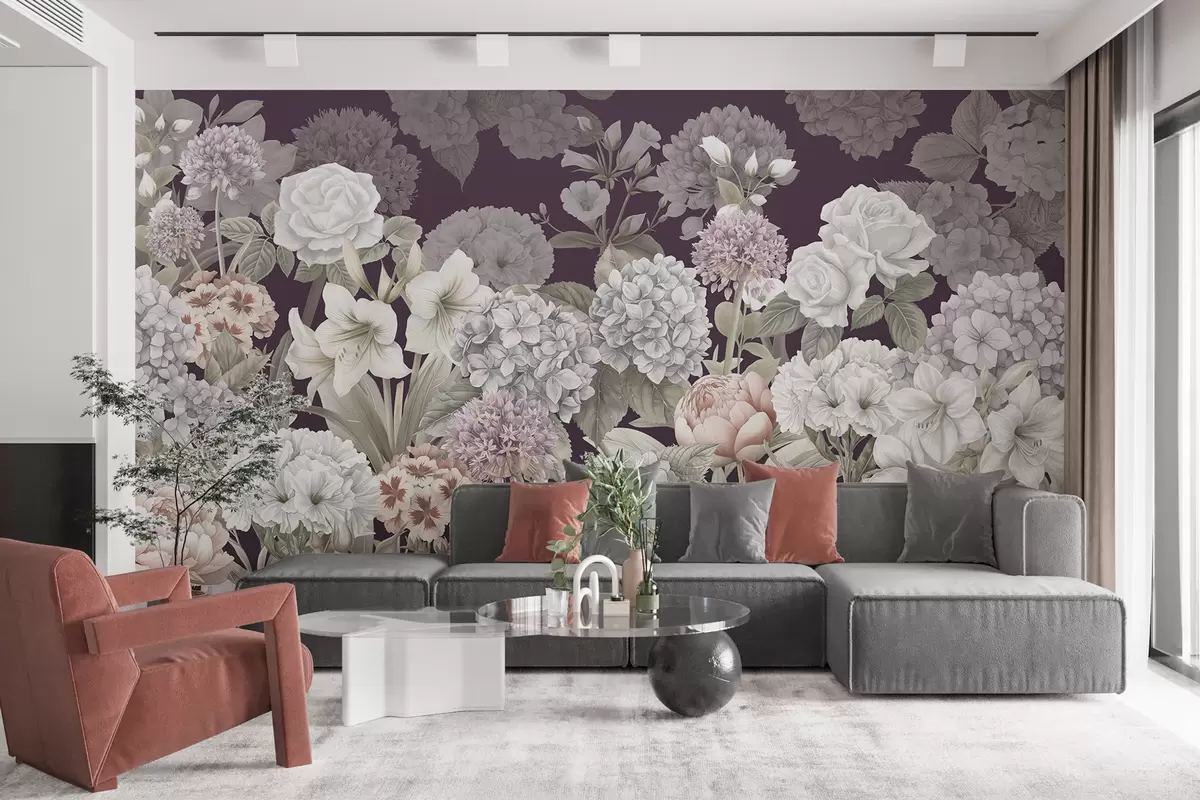 Fotomurales Mágico jardín de verano sobre un fondo carmesí Nr. w08140v2