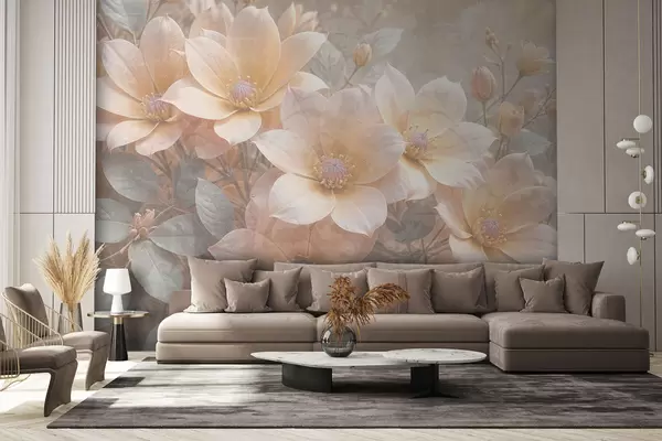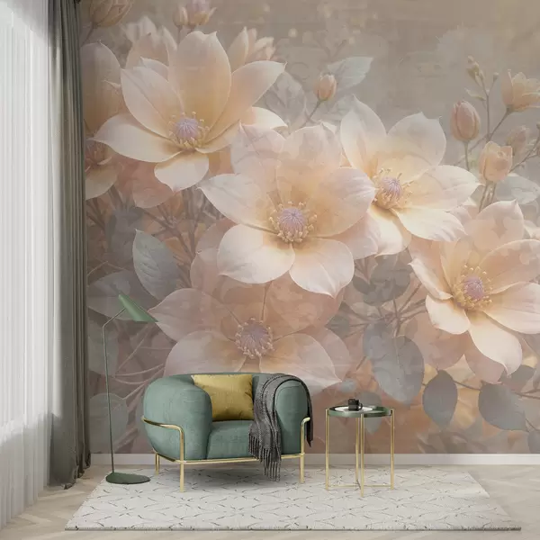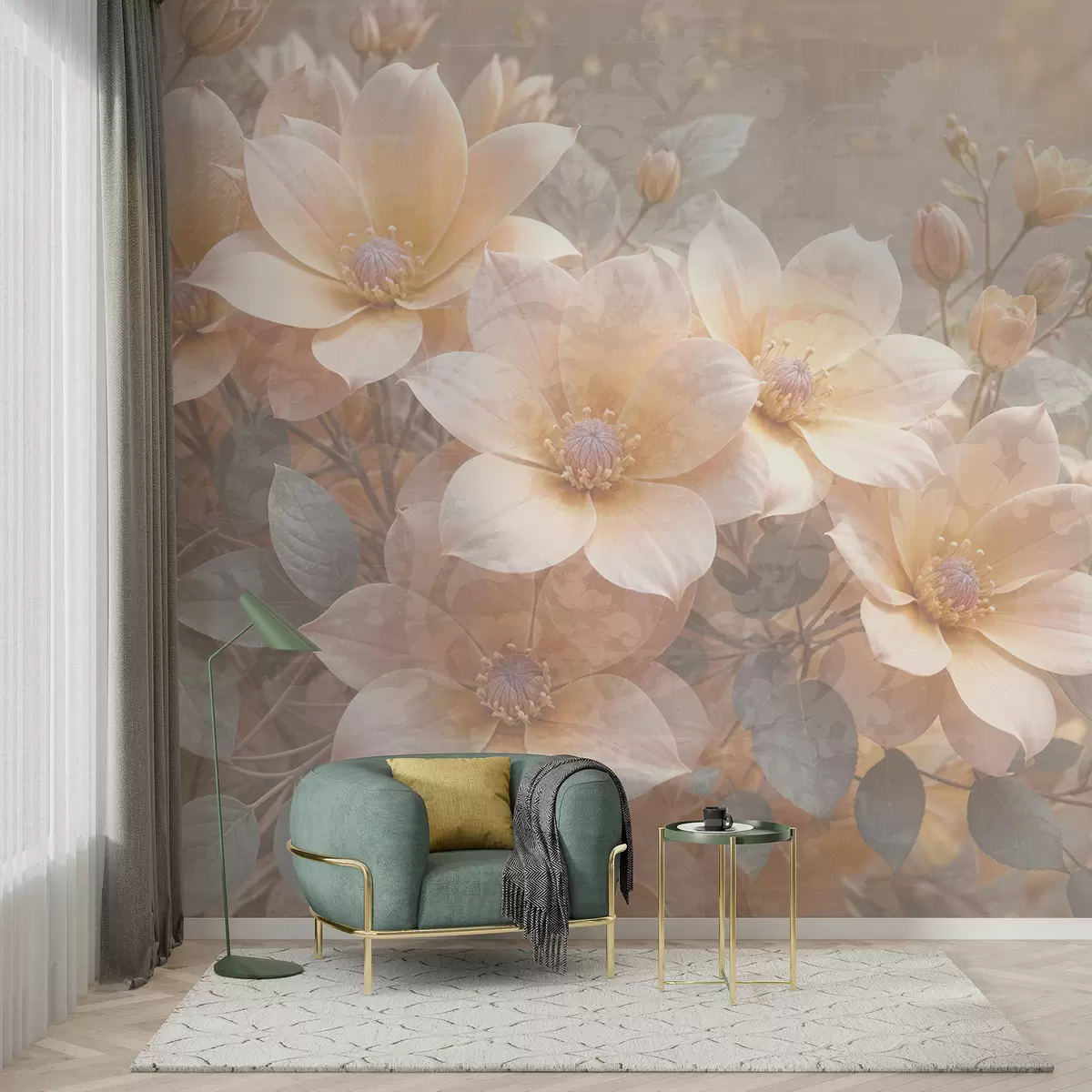 Fotomurales Flores de colores pastel con delicados pétalos sobre un fondo de textura difuminada , creando una atmósfera serena Nr. w08273