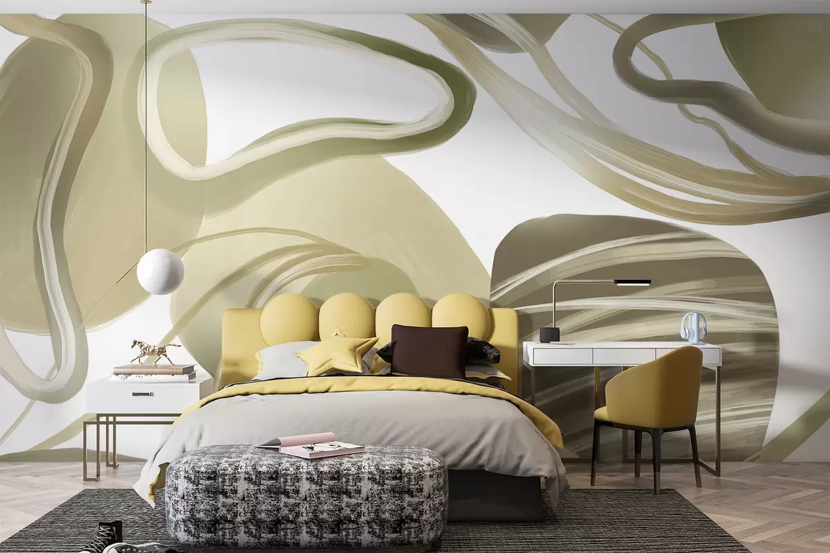 Fotomurales Formas y curvas abstractas arremolinadas en tonos beige que crean una composición dinámica y fluida Nr. w08279