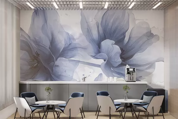 murales de pared Suaves y etéreas flores de dalia azules y blancas con delicados pétalos en capas sobre un fondo difuminado w08308