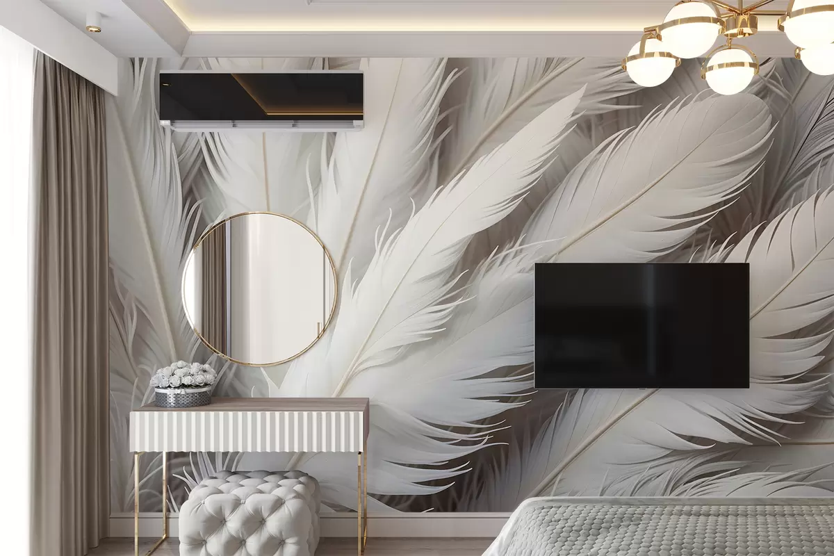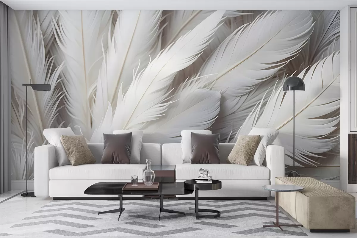 Fotomurales Suaves y esponjosas plumas blancas con una delicada textura ondulada sobre un fondo claro Nr. w08319