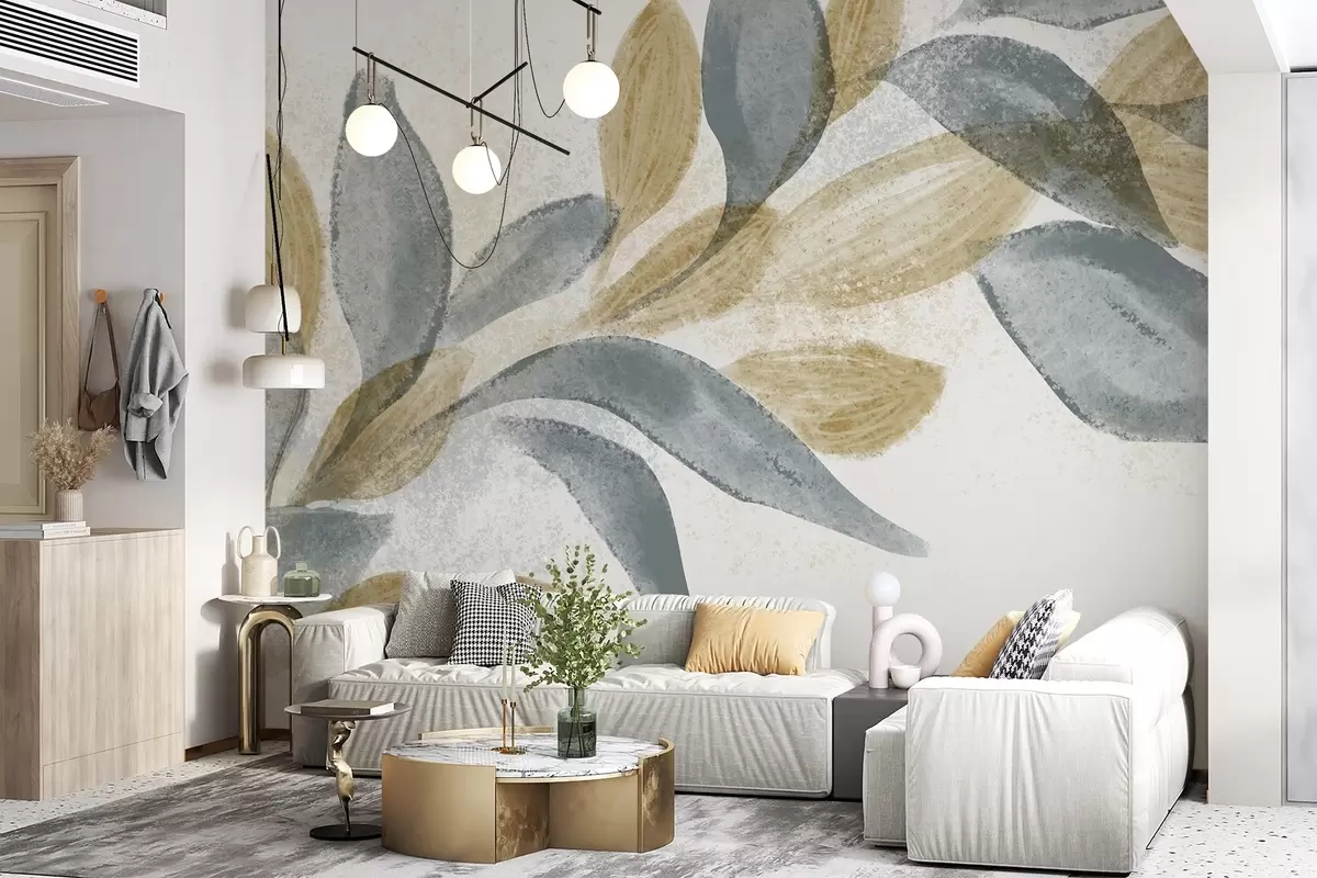 Fotomurales Hojas de color beige y azul en textura pastel con bordes suaves y salpicaduras sobre un fondo claro Nr. w08374
