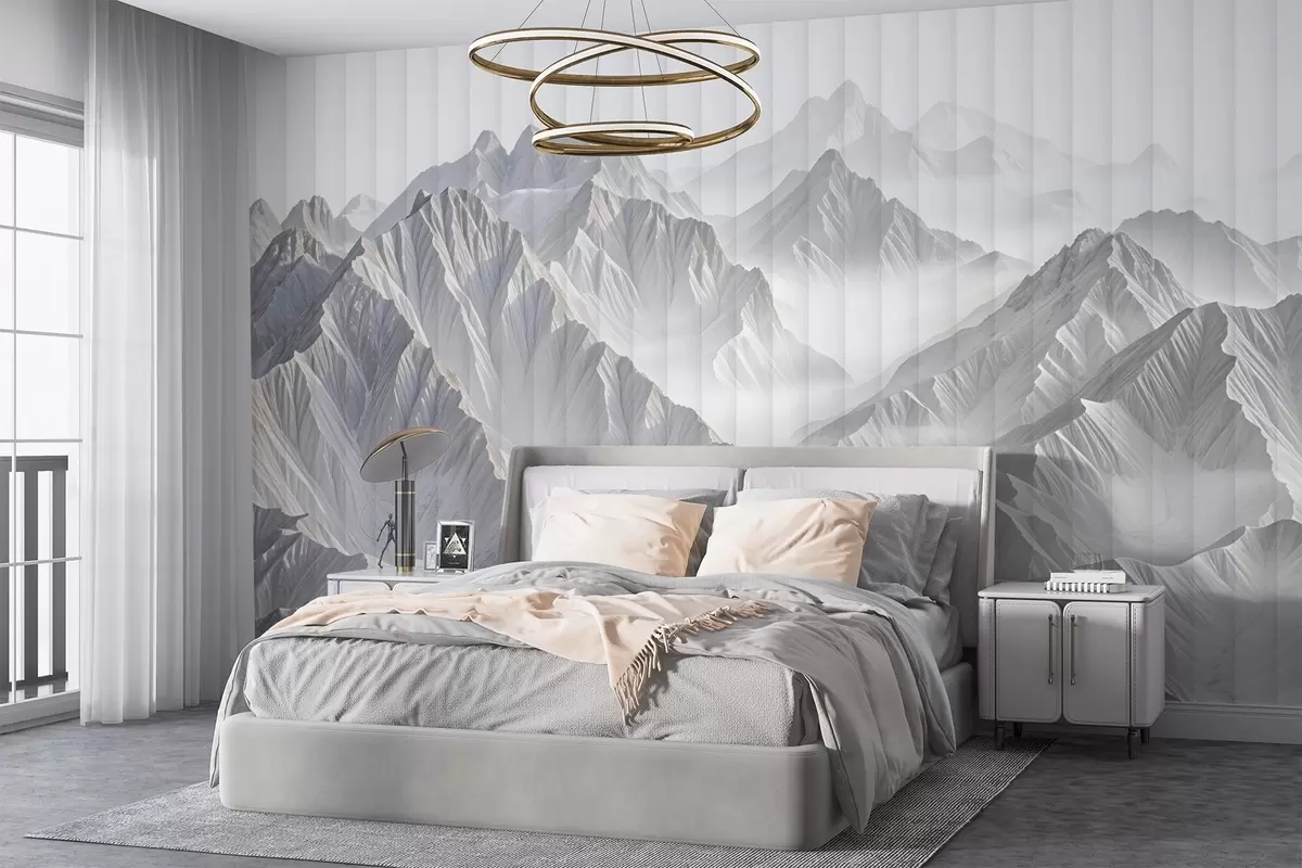 Fotomurales Picos de montaña minimalistas con textura nevada en un paisaje brumoso y etéreo Nr. w08378