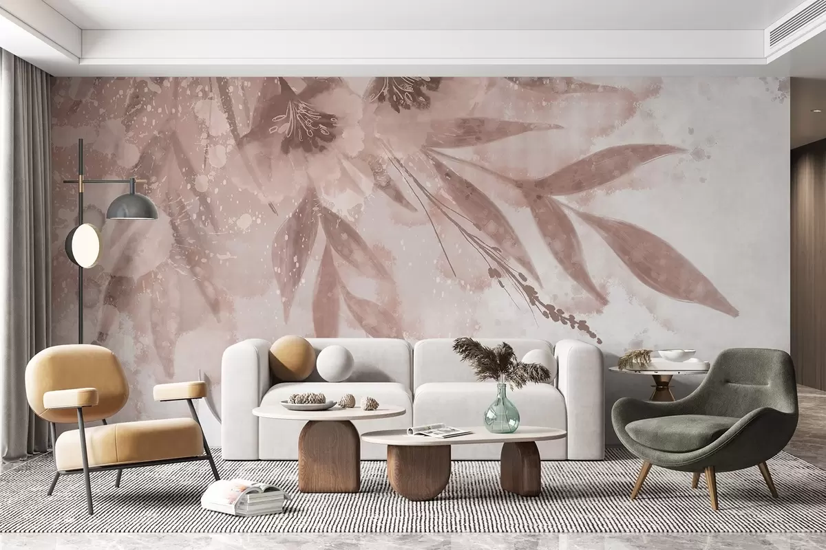 Fotomurales Delicado salpicón rosa con elementos florales abstractos con fondo suave y difuminado Nr. w08417