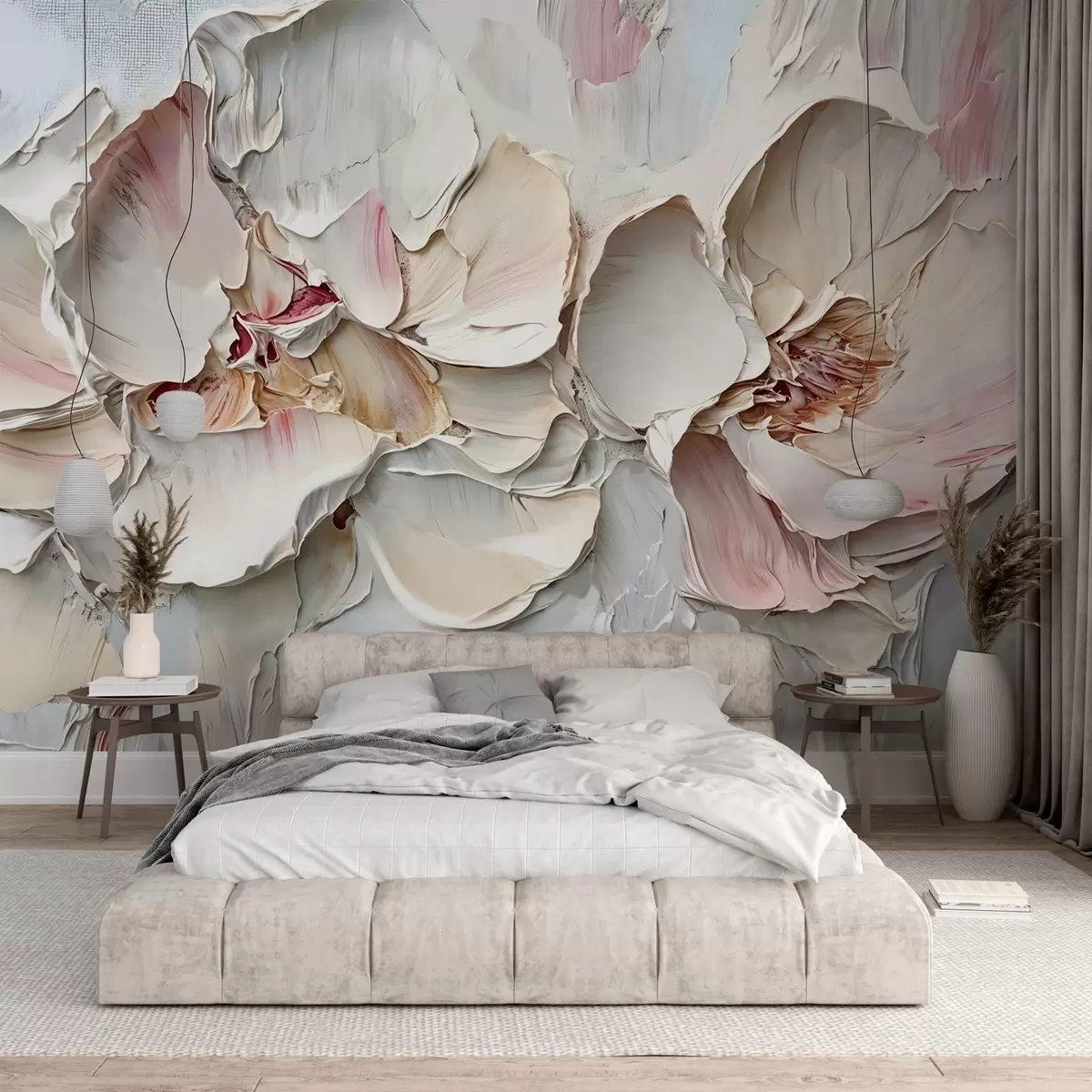 Fotomurales Delicadas flores de color rosa pálido con suaves pétalos en capas sobre un fondo de textura apagada imitación de pintura al óleo empastada Nr. w08467