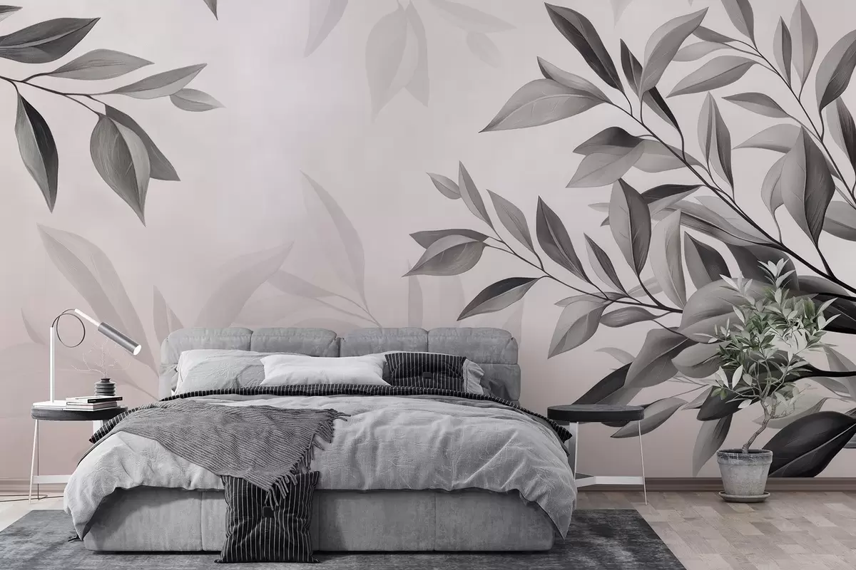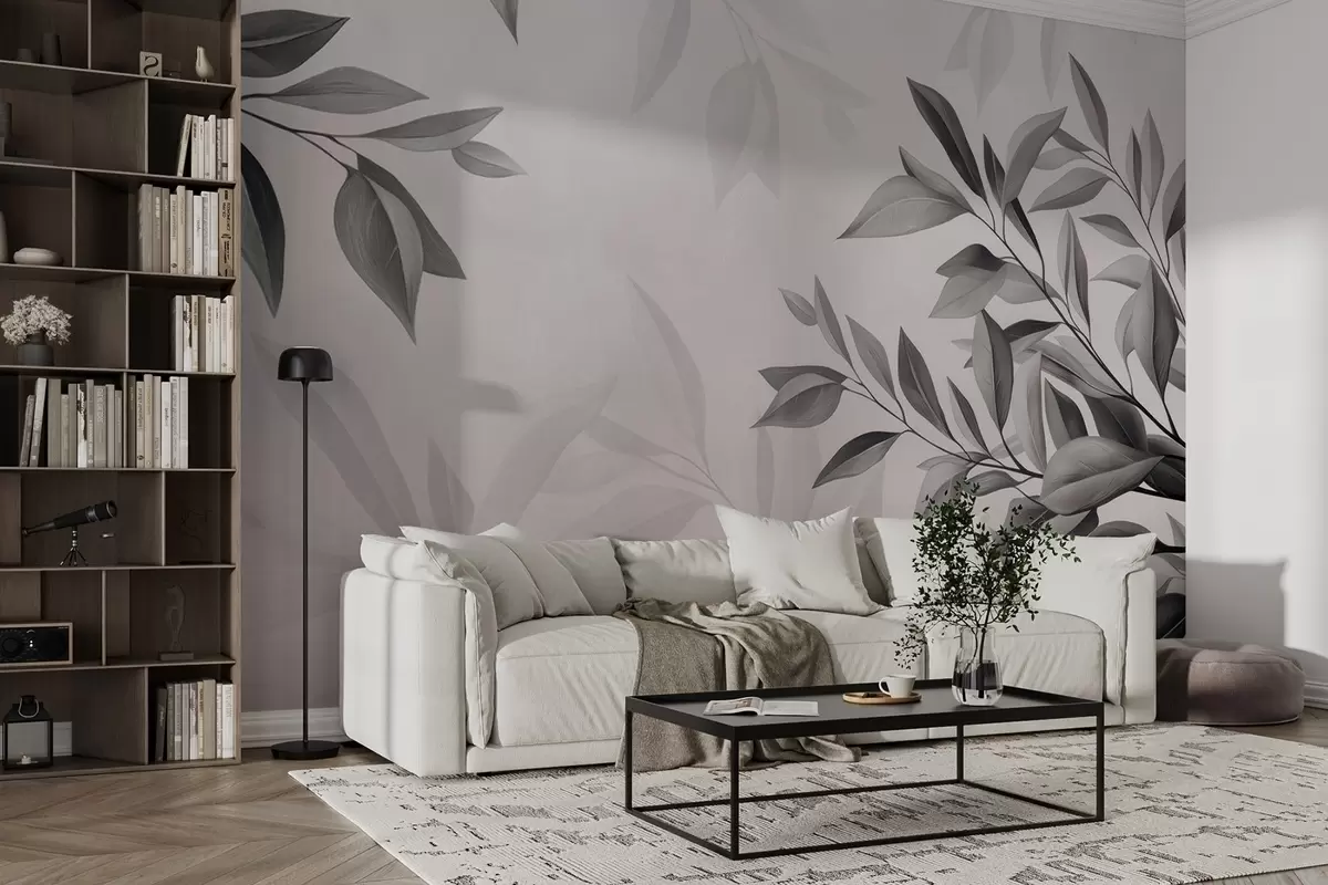 Fotomurales Ramas azul oscuro con hojas sobre fondo gris Nr. w08499v1