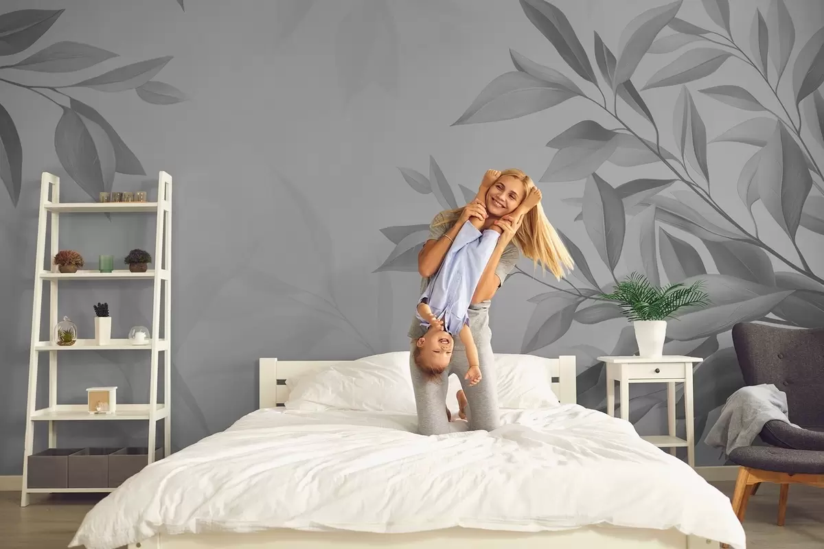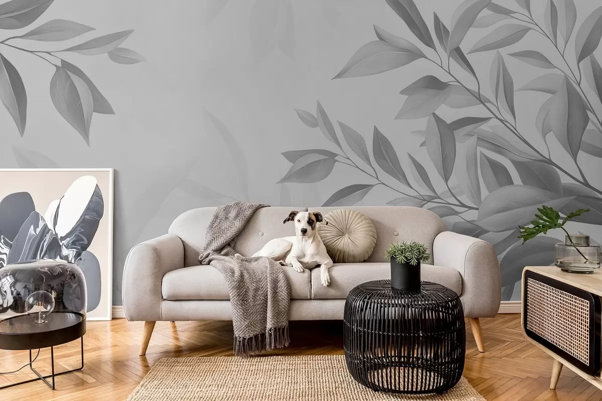 Fotomurales Ramas grises con hojas sobre fondo gris Nr. w08499v3