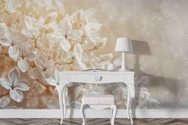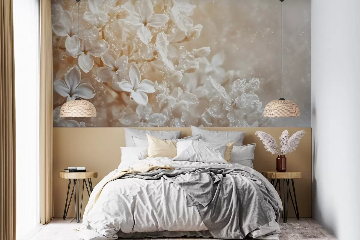 Fotomurales Delicadas flores blancas de color lila con un suave fondo amarillo difuminado Nr. w08533