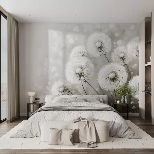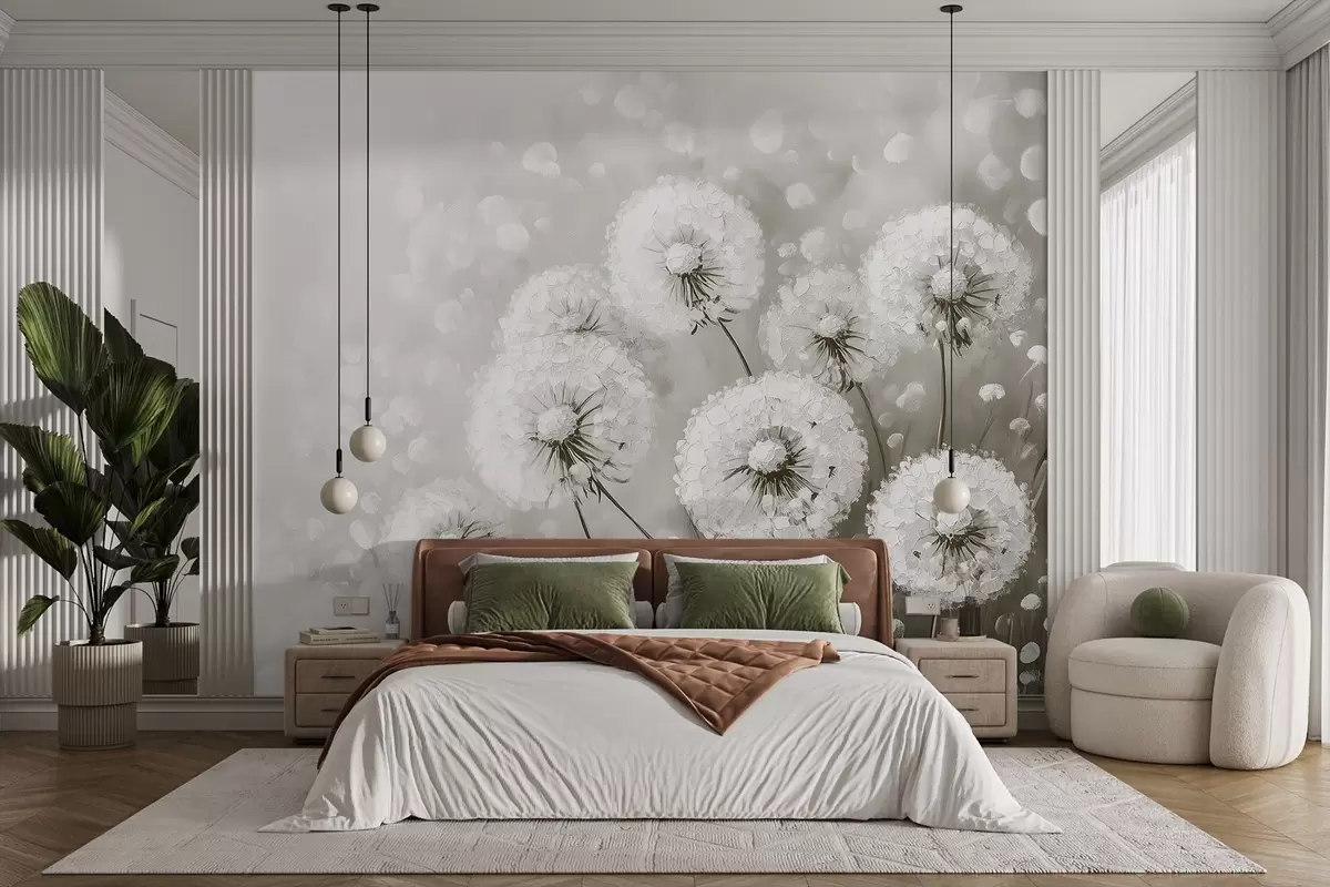 murales de pared Dientes de león aéreos sobre fondo monocromo w08594