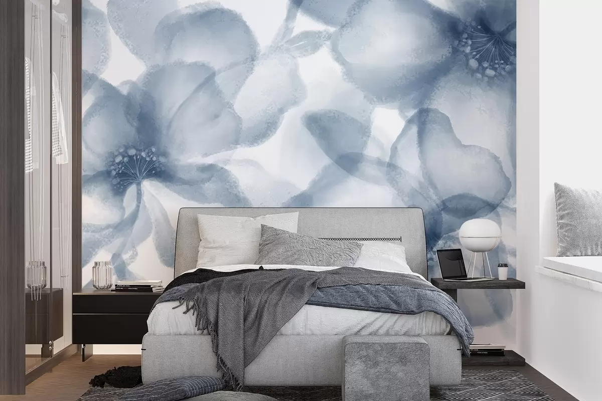 Fotomurales Flores azules abstractas suaves y difuminadas que crean un estampado floral sereno y tranquilizador Nr. w08607
