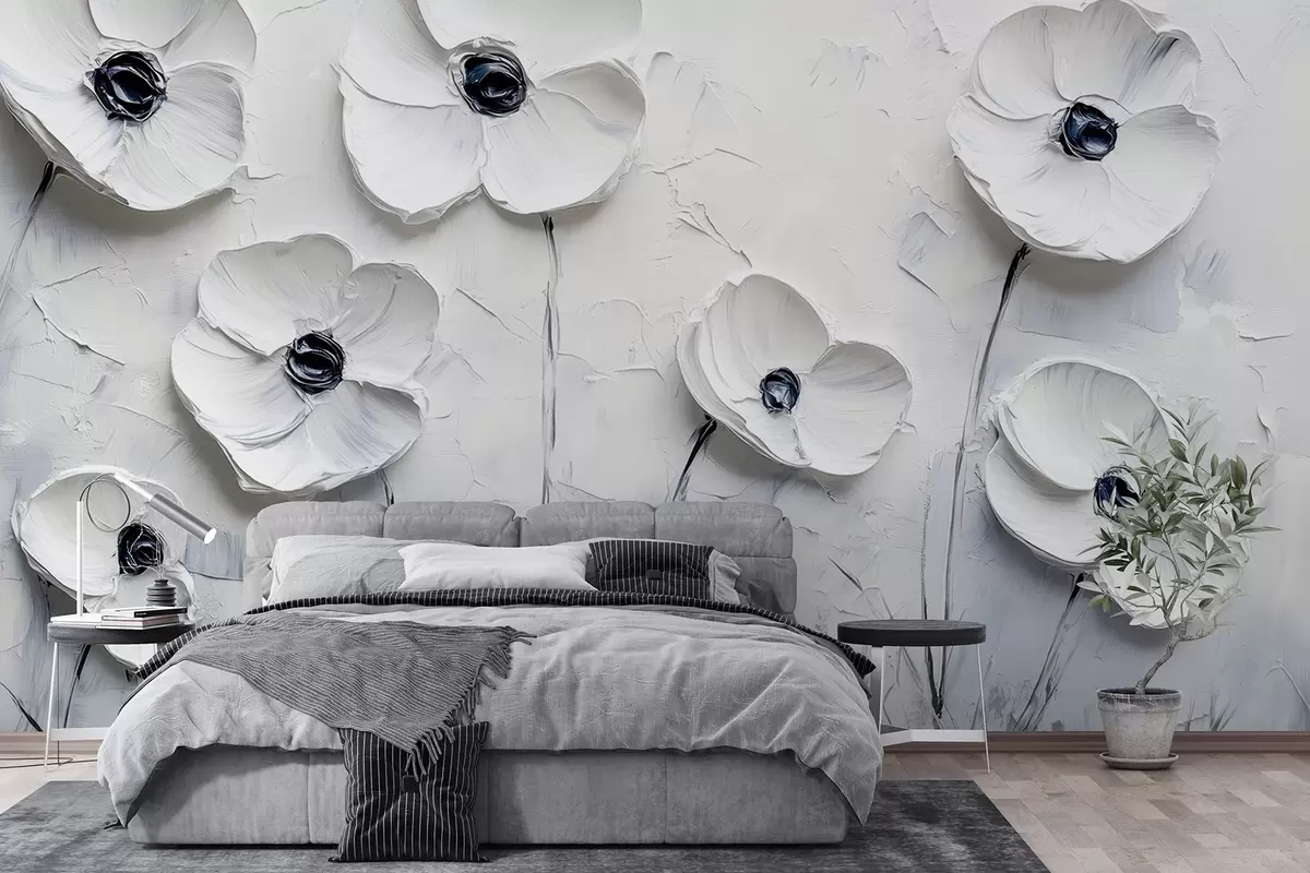 Fotomurales Elegantes flores grises con imitación de pinceladas Nr. w08632