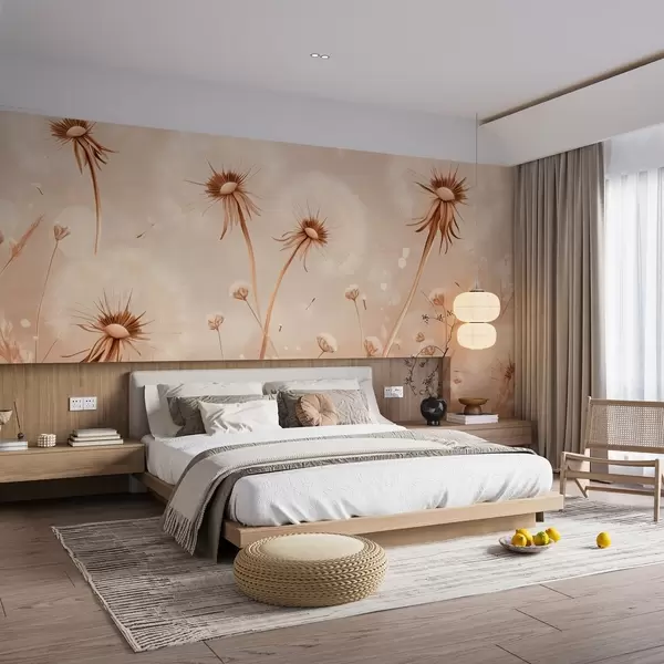 Fotomurales Elegantes dientes de león y flores silvestres en estilo pictórico en tonos cálidos Nr. w08657