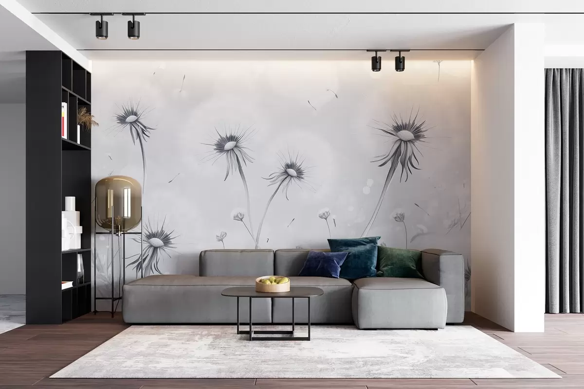 Fotomurales Elegantes dientes de león y flores silvestres en estilo pictórico en tonos azules Nr. w08657v2