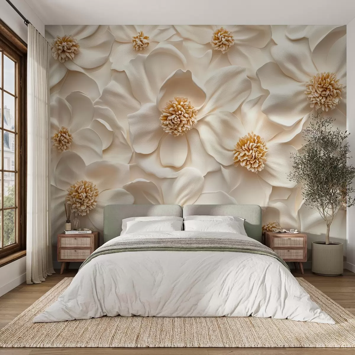 Fotomurales composición floral en 3D de color beige con toques amarillos Nr. w08691