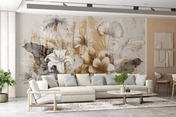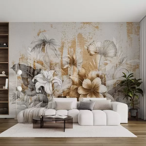 Fotomurales Diseño vintage con flores y plantas exóticas Nr. w08767