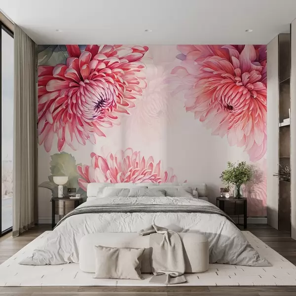 Fotomurales Flores de crisantemo en estilo acuarela en un brillante color frambuesa Nr. w08855