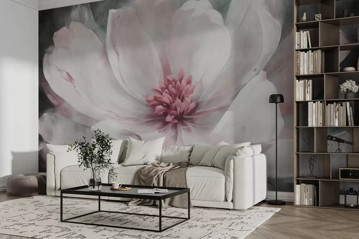 Fotomurales Gran flor blanca abstracta con rosa Nr. w08864