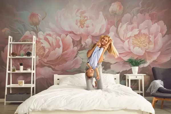 Fotomurales Peonías de cuento en estilo pincelada en tonos cálidos Nr. w08879v2