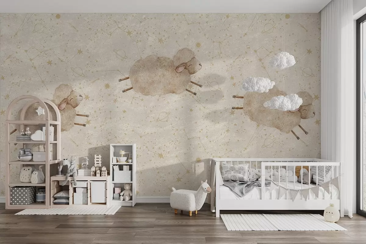 Fotomurales Ovejas saltando sobre fondo estrellado Nr. w08930
