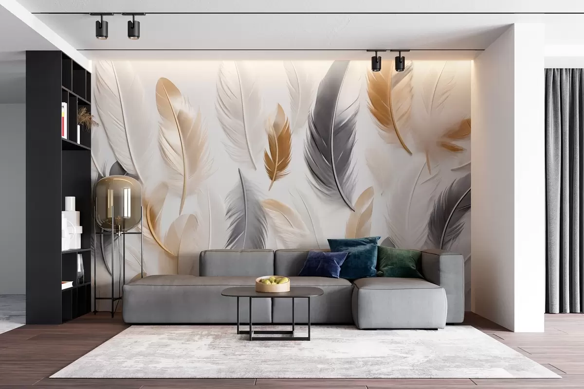 Fotomurales Plumas beige-gris en tonos suaves y tranquilos Nr. w08955