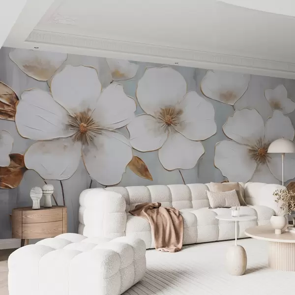 Fotomurales Grandes flores blancas con hojas amarillas sobre fondo gris Nr. w08999