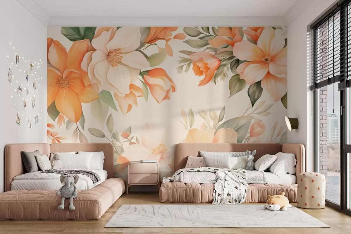 Fotomurales Grandes flores naranjas en estilo acuarela Nr. w09023