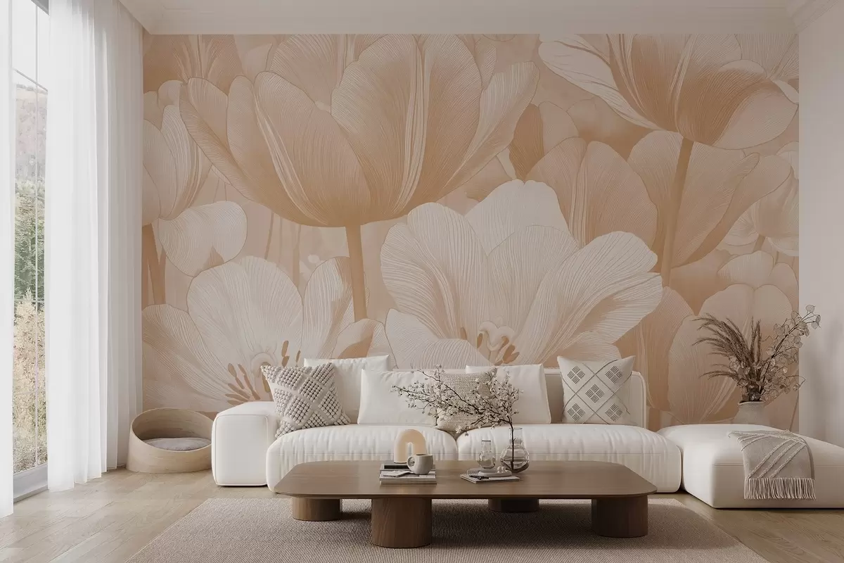Fotomurales Amapolas beige en tonos claros Nr. w09099