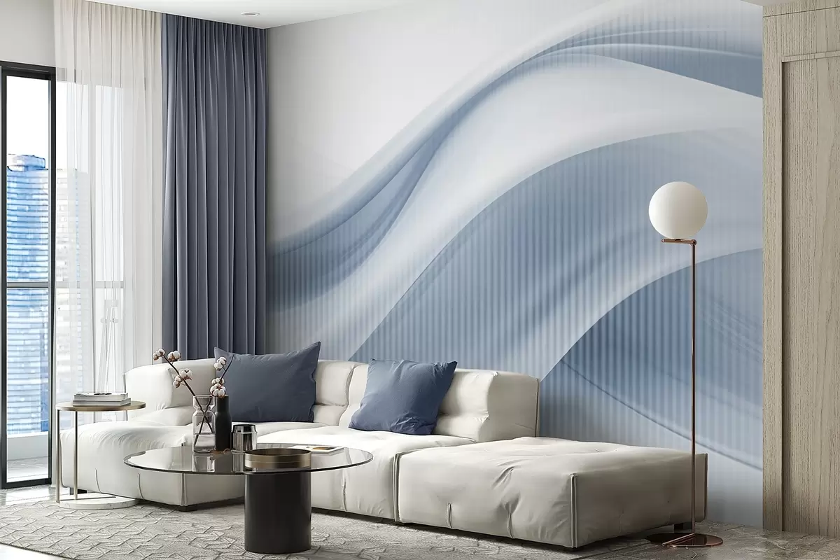Fotomurales Estampado abstracto con líneas fluidas y sutiles rayas verticales, que crean una sensación de movimiento y profundidad, paleta azul Nr. w09189v1