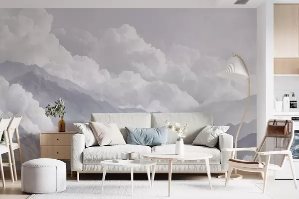 murales de pared Suaves nubes sobre montañas en tonos azules w09226v2