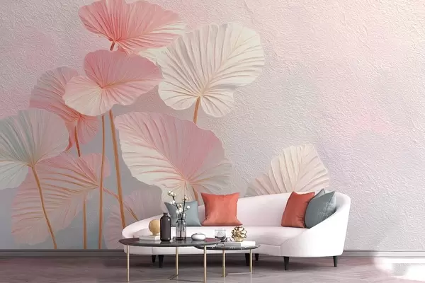 Fotomurales Elegantes hojas tropicales grandes en suaves tonos rosas y azules Nr. w09252