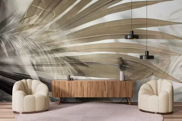 Fotomurales Hojas de palmera con un tono marrón claro, superpuestas y creando un efecto de capas, sobre un fondo suave y neutro Nr. w09256