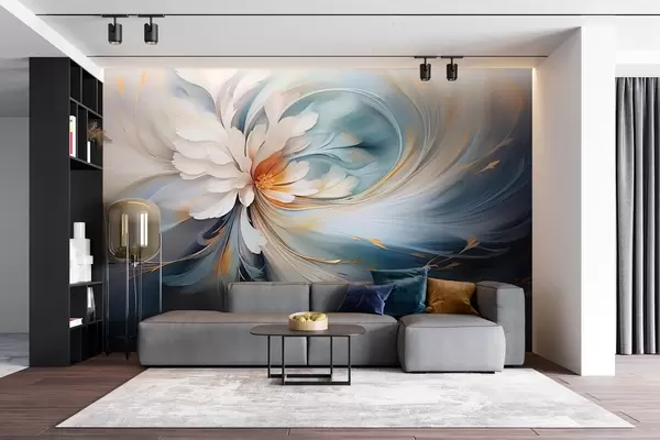 Fotomurales Flor abstracta en tonos azules y naranjas Nr. w09270v1