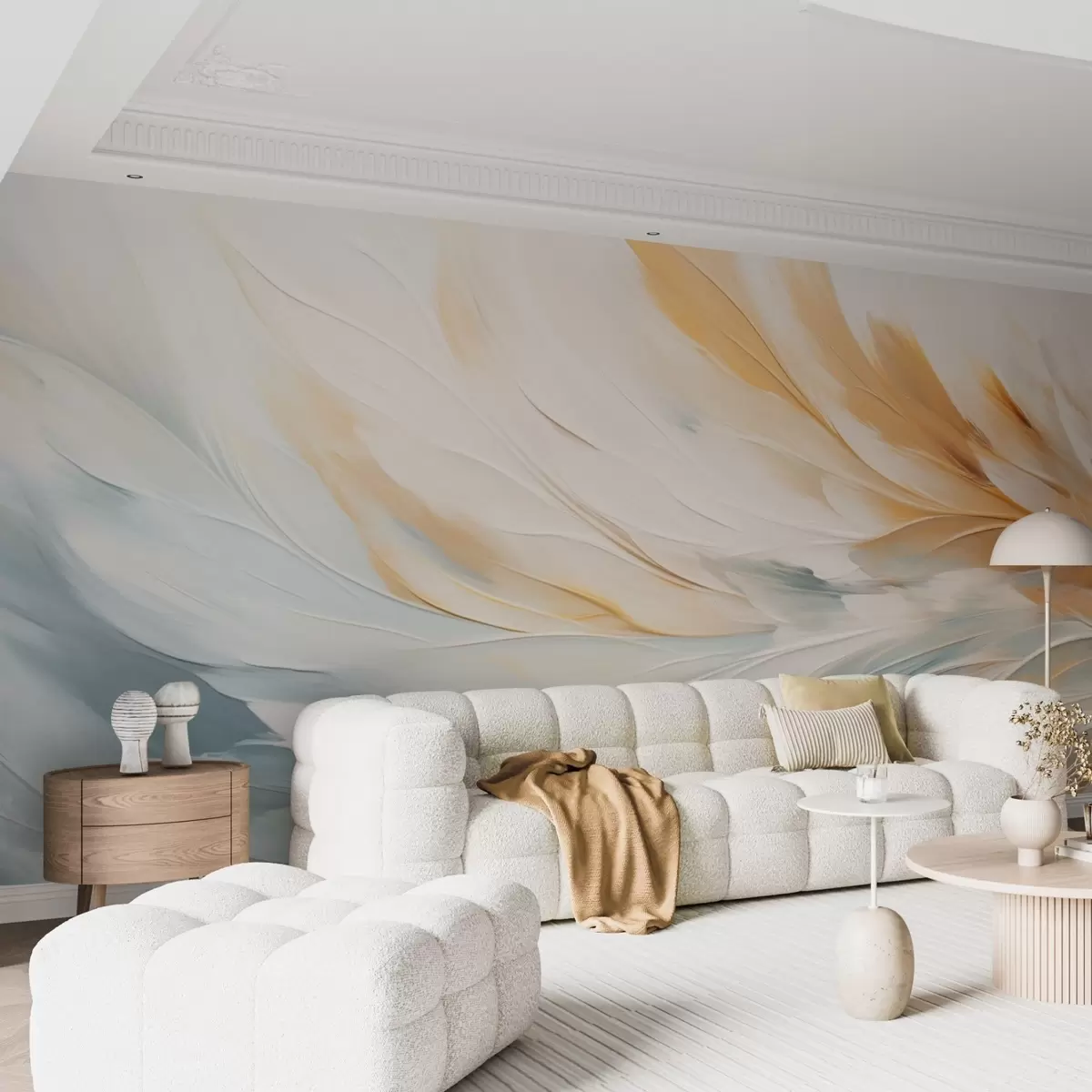 Fotomurales Plumas abstractas en suaves tonos azules y naranjas Nr. w09283