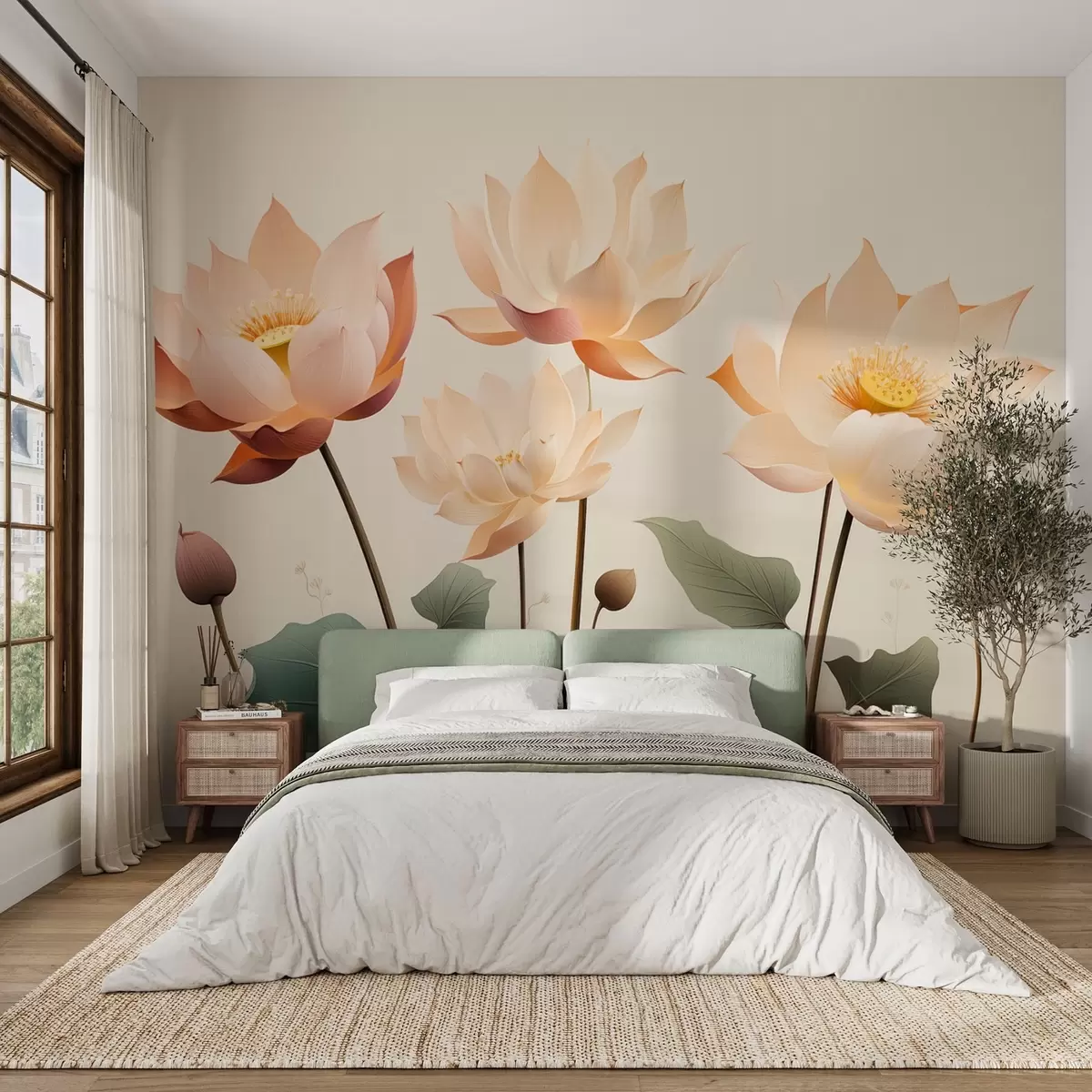 Fotomurales Elegantes flores de loto en una suave paleta de colores pastel Nr. w09306