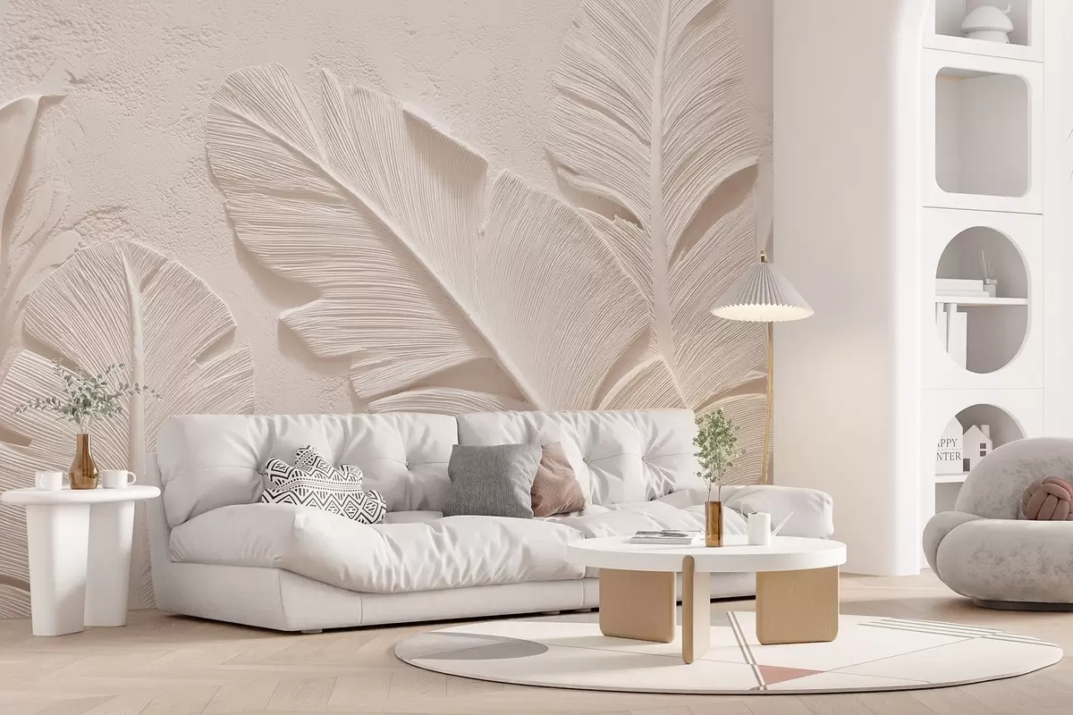 Fotomurales Hojas en relieve en cálidos tonos beige-arena Nr. w09307v1