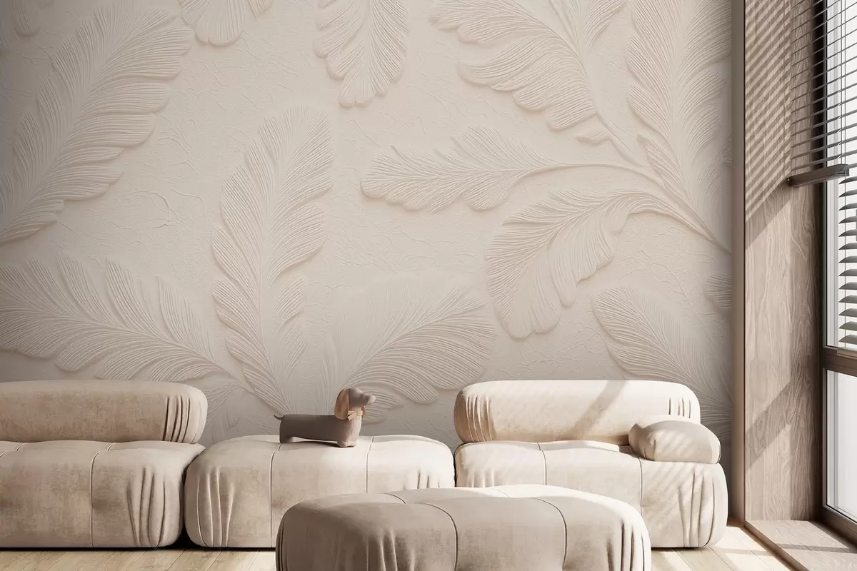 Fotomurales Hojas en relieve sobre fondo claro con efecto craquelado Nr. w09309