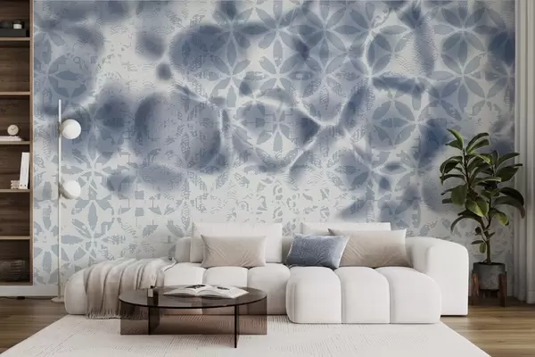 Fotomurales Arte abstracto texturizado con estampado floral azul, efecto difuminado y borroso, que crea una atmósfera suave y soñadora Nr. w09322