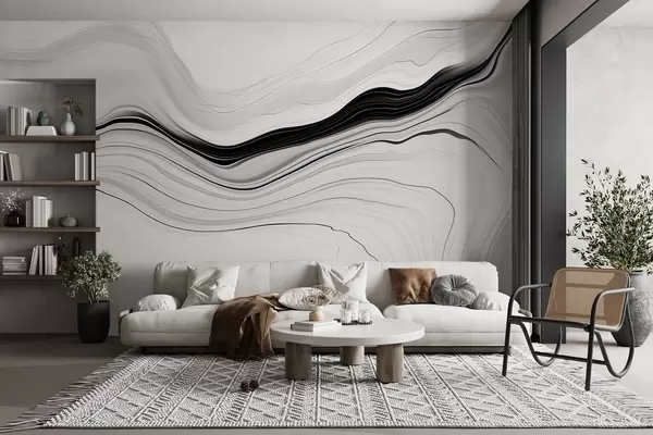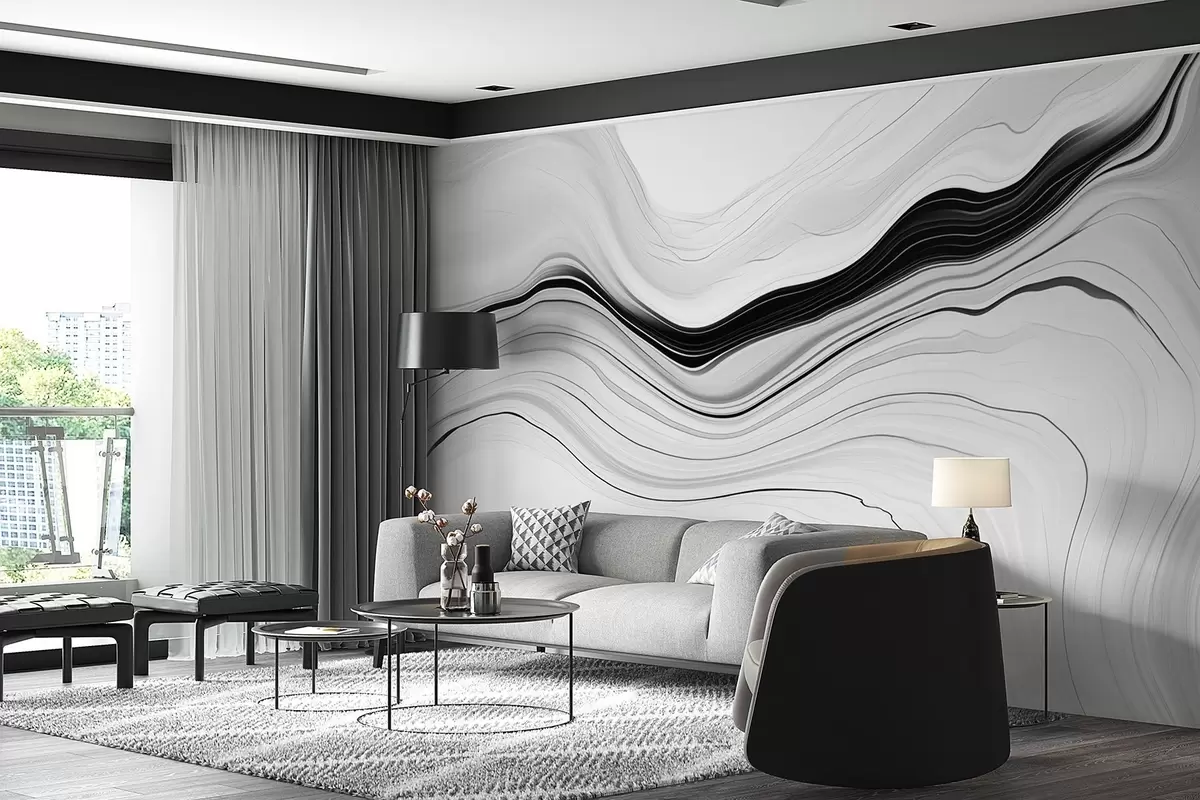 Fotomurales Motivo en blanco y negro con efecto de capas de mármol Nr. w09358