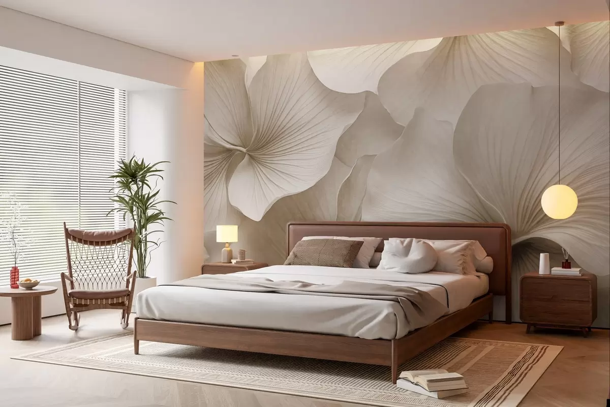 Fotomurales Hojas de ginkgo blancas y beige, textura suave, fondo floral abstracto, estilo minimalista moderno Nr. w09421v1