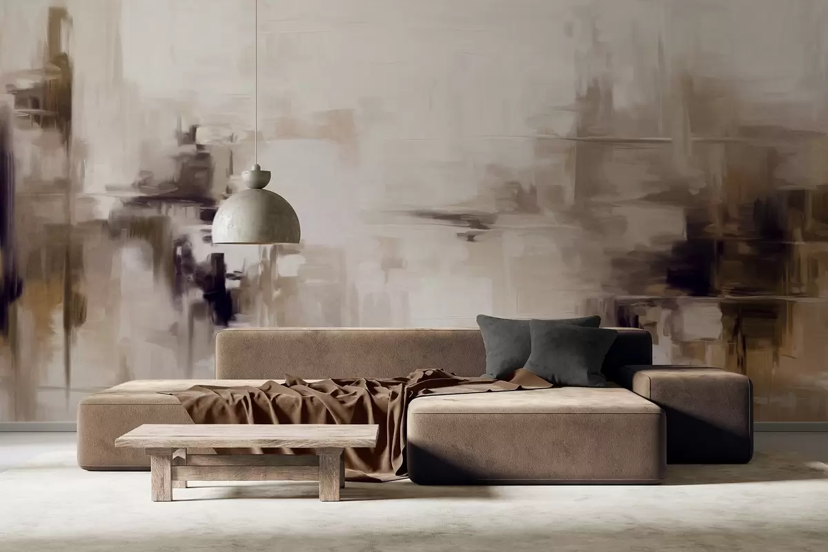 Fotomurales Imitación de pintura abstracta de paisaje con textura, con pinceladas marrones y blancas, estilo moderno Nr. w09422v1