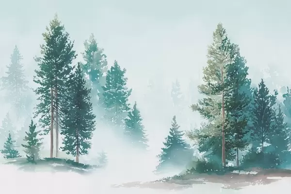 Fotomurales Bosque de pinos brumoso en estilo acuarela Nr. w09444