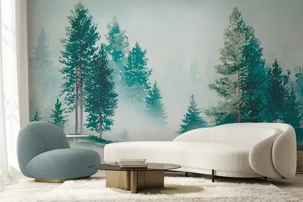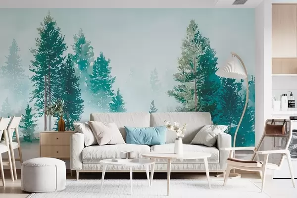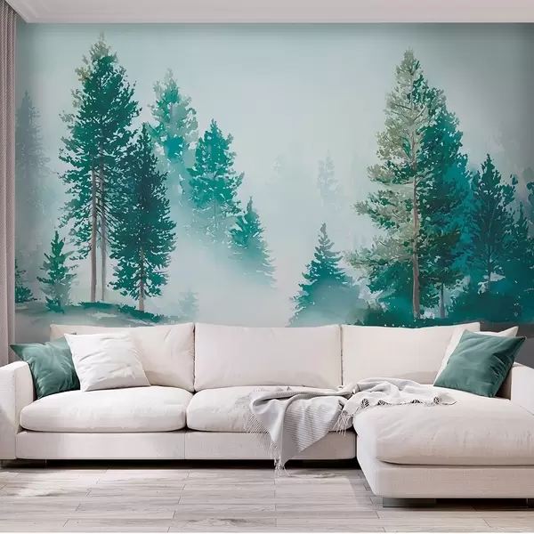 Fotomurales Bosque de pinos brumoso en estilo acuarela Nr. w09444