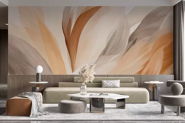 Fotomurales Plumas abstractas con textura en marrón, blanco y gris y varios tonos, superpuestas sobre un fondo blanco. Nr. w09531