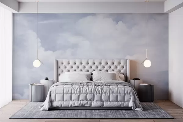 Fotomurales Cielo con textura pastel lleno de nubes blancas con una estética suave y minimalista Nr. w09589