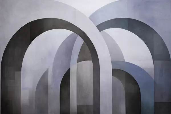 Fotomurales Arcos geométricos abstractos con textura en tonos tierra de beige, marrón y gris, un diseño arquitectónico moderno en capas. Nr. w09611