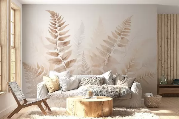 Fotomurales Hojas secas de helecho con textura en varios tonos de marrón, con un fondo suave y claro en estilo acuarela. Nr. w09615