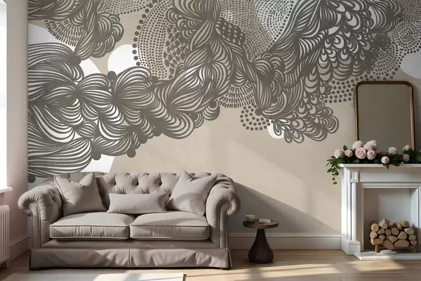 Fotomurales Diseño abstracto con textura sobre fondo beige, con líneas intrincadas y texturas punteadas. Nr. w09621
