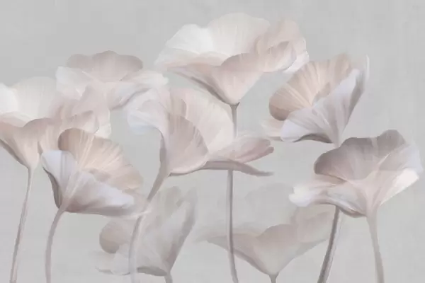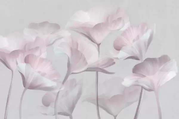 Fotomurales Flores de loto translúcidas de color turquesa pálido con pétalos delicados sobre un fondo gris apagado. Nr. w09640v2
