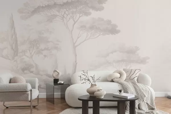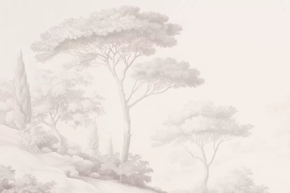 Fotomurales Tranquilo paisaje forestal en una paleta de colores beige. Nr. w09685