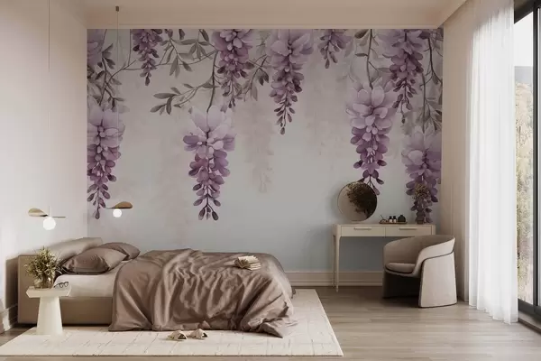 Fotomurales Delicadas ramas grandes de lavanda colgadas en la pared, imitación acuarela. Nr. w09690